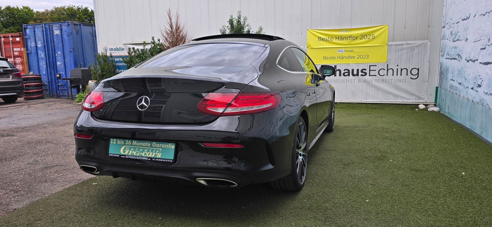 Adaptives Bremslicht, Airbag Beifahrerseite abschaltbar, Airbag Fahrer-/Beifahrerseite, Aktive Motorhaube, Außenspiegel elektr. verstell- und heizbar, beide, Außenspiegel Wagenfarbe, Beckenairbag vorn (Pelvisbag), Design- und Ausstattungslinie AMG Line, Einschaltautomatik für Fahrlicht, Fahrassistenz-System: Agility Select / Dynamic Select (Fahrmodusschalter), Fahrassistenz-System: Attention-Assist (Müdigkeitserkennungs-Sensor), Fahrassistenz-System: Auffahrwarnsystem mit Bremsfunktion (Collision Prevention Assist), Fahrassistenz-System: Berganfahrhilfe, Fernentriegelung Heckdeckel, Feststellbremse elektrisch, Heckleuchten LED, Infotainment-System: Mercedes me connect, Isofix-Aufnahmen für Kindersitz an Rücksitz, Karosserie: 2-türig, Klimaautomatik (Thermatic 2-Zonen), Knieairbag Fahrerseite, Kopf-Airbag-System (Windowbag), Kraftstofftank: vergrößert, Lenkrad mit Multifunktion, Mercedes-Benz Notrufsystem, Motor 2,0 Ltr. - 180 kW KAT, Reifendruck-Kontrollsystem, Reiserechner, Rücksitzlehne geteilt / klappbar, Schadstoffarm nach Abgasnorm Euro 6, Seitenairbag (Sidebag) vorn, Sitz vorn links elektr. verstellbar, Sitz vorn rechts elektr. verstellbar, Start/Stop-Anlage, Warnanlage / Statusanzeige für Sicherheitsgurte im Fond, Wärmeschutzverglasung, Ambiente-Beleuchtung, Regensensor, Seitenscheiben hinten und Heckscheibe abgedunkelt, Sitzheizung vorn, Ambiente-Beleuchtung, Regensensor, Seitenscheiben hinten und Heckscheibe abgedunkelt, Sitzheizung vorn