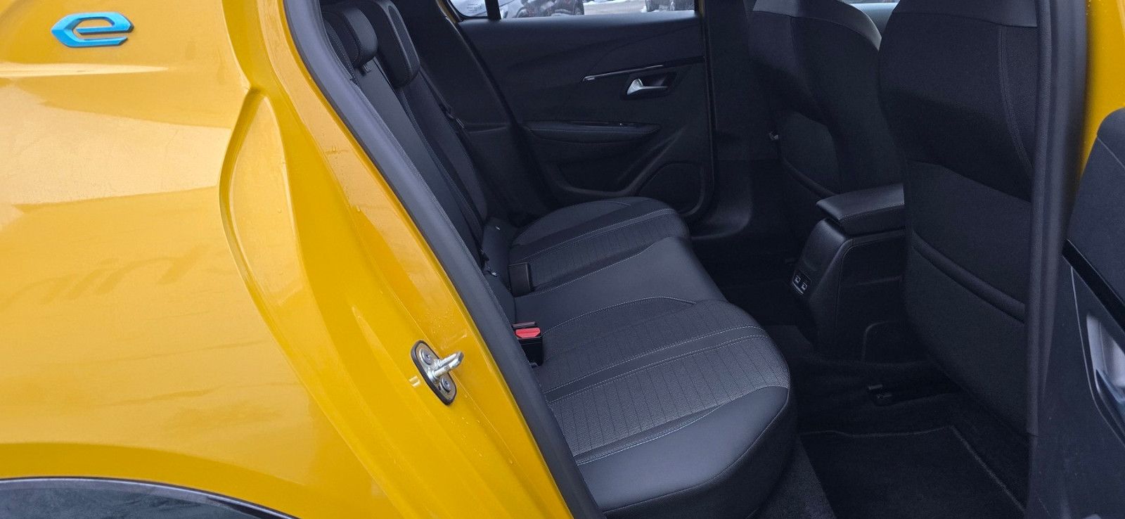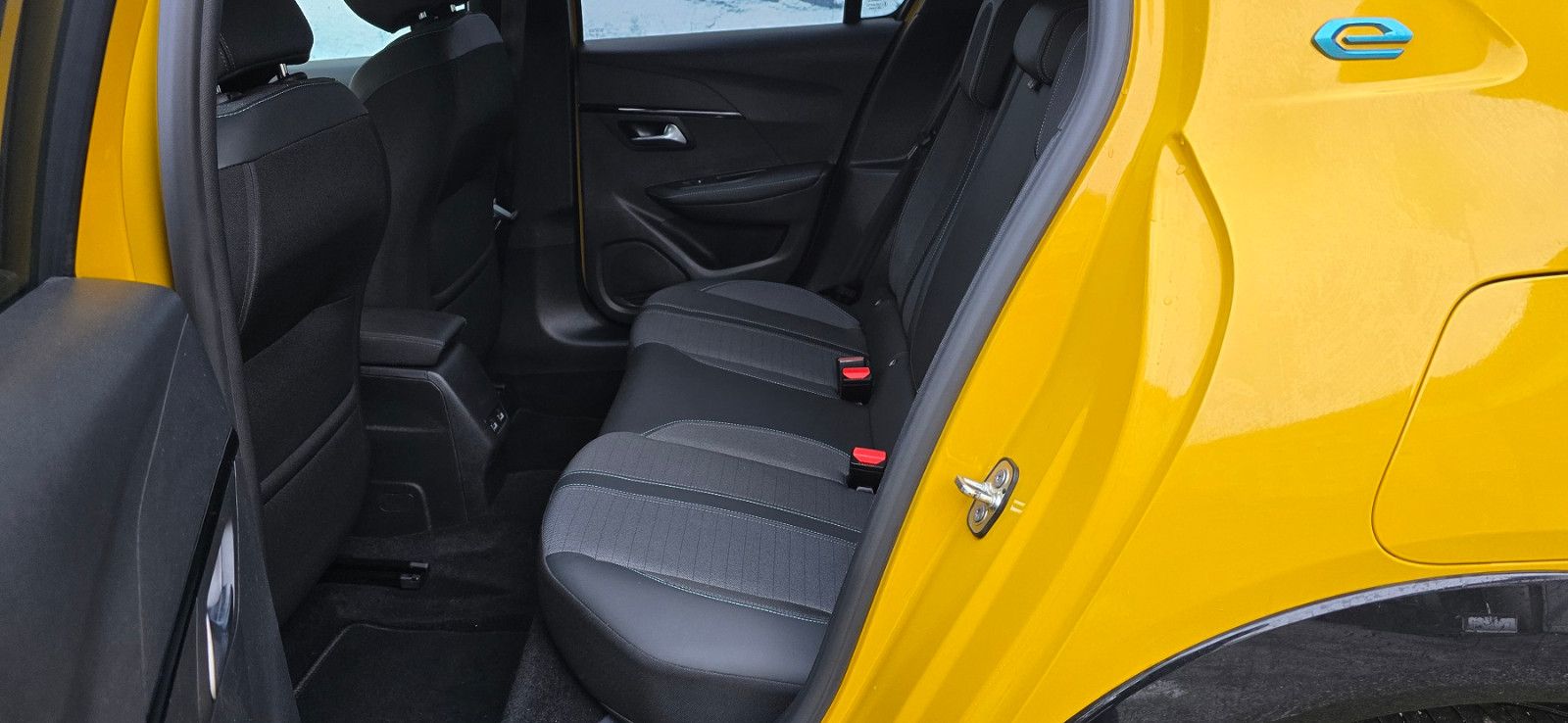 Airbag Beifahrerseite abschaltbar, Airbag Fahrer-/Beifahrerseite, Akustischer Fußgängerschutz (Außensound), Antischlupfregelung (ASR), Audiosystem RCC (Radio, MP3-fähig), Autom. Begleitfunktion der Beleuchtung (Coming Home, Leaving Home), Außenspiegel elektr. anklappbar, Außenspiegel elektr. verstell- und heizbar, beide, Außenspiegel mit Abdeckkappen schwarz, Blinkleuchte in Außenspiegel integriert, Bordcomputer, Einparkhilfe hinten, Einschaltautomatik für Fahrlicht, Elektr. Bremskraftverteilung, Elektrofahrzeug, Elektromotor 100 kW (cont. 57 kW), Fahrassistenz-System: aktiver Spurassistent (Lenkunterstützung), Fahrassistenz-System: Berganfahrhilfe, Fahrassistenz-System: Kollisionswarnsystem, Fahrassistenz-System: Müdigkeitserkennungs-Sensor, Fahrassistenz-System: Verkehrszeichenerkennung, Fahrassistenz-System: Verkehrszeichenerkennung, erweitert (Geschwindigkeits-Regel-/Begrenzeranlage), Fahrmodusschalter, Fensterheber elektrisch hinten, sequentiell, mit Einklemmschutz, Frontscheibe geräuschdämmend, Getränkehalter vorn, Heckleuchten LED, Heckscheibe heizbar, Heckschürze, schwarz glänzend, Heckspoiler schwarz glänzend, Innenraumfilter: Staub- und Pollenfilter, Innenspiegel mit Abblendautomatik, Isofix-Aufnahmen für Kindersitz, Karosserie: 5-türig, Kartentasche an Vordersitze, Kindersicherung elektrisch, Klimaautomatik, Kopf-Airbag-System hinten, Kühlergrill Wagenfarbe, Lenkrad mit Multifunktion, Mobile Online Dienste Mirror Screen, Multifunktionsanzeige mit Farbdisplay (DGT7C), Parkbremse elektrisch, Pyrotechnischer Gurtstraffer, Radioempfang digital (DAB+), Reifen-Reparaturkit, Reifendruck-Kontrollsystem, Rückfahrkamera mit 180° Umgebungsansicht, Rücksitzbank klappbar 1/3-2/3, Rücksitzlehne geteilt/klappbar, Scheinwerfer Eco-LED, Seitenairbag vorn, Seitenscheiben hinten und Heckscheibe dunkel getönt, Sitz vorn links höhenverstellbar, Sitzbezug / Polsterung: Stoff/Kunstleder, Türgriffe außen Wagenfarbe, Warnanlage für Sicherheitsgurte, Wärmepumpe zur Reichweitenoptimierung
